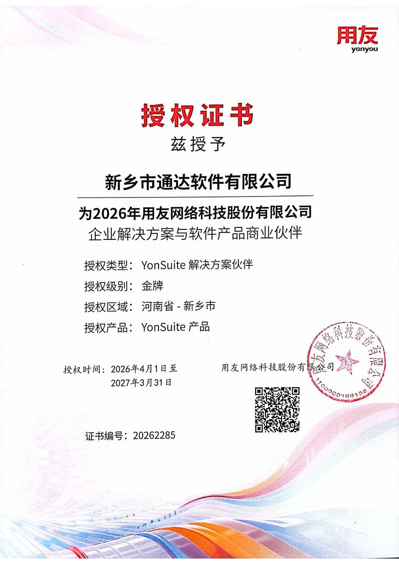 新鄉(xiāng)市通達(dá)軟件有限公司是一家集軟件開(kāi)發(fā)、銷(xiāo)售、服務(wù)于一體的高科技公司,是用友軟件授權(quán)營(yíng)銷(xiāo)服務(wù)機(jī)構(gòu),河南區(qū)核心商業(yè)伙伴、用友UAP平臺(tái)開(kāi)發(fā)伙伴。自1999年以來(lái),公司一直致力為企事業(yè)單位提供信息化解決方案和應(yīng)用服務(wù),助力企事業(yè)單位實(shí)現(xiàn)數(shù)字化轉(zhuǎn)型。