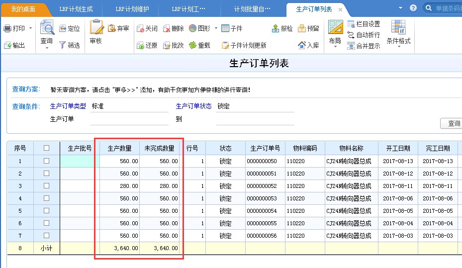 3.下達(dá)生產(chǎn)完成后,相應(yīng)彈出“生產(chǎn)訂單自動(dòng)生成”界面,可看到下達(dá)的生產(chǎn)計(jì)劃